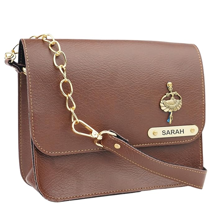 Stylish Leather Sling Bag for Women: This customized leather sling bag for women features a chain strap and elegant design, making it a perfect shoulder bag for women who want to stand out. Ideal as a sling purse for women, it’s a must-have accessory for fashion lovers.