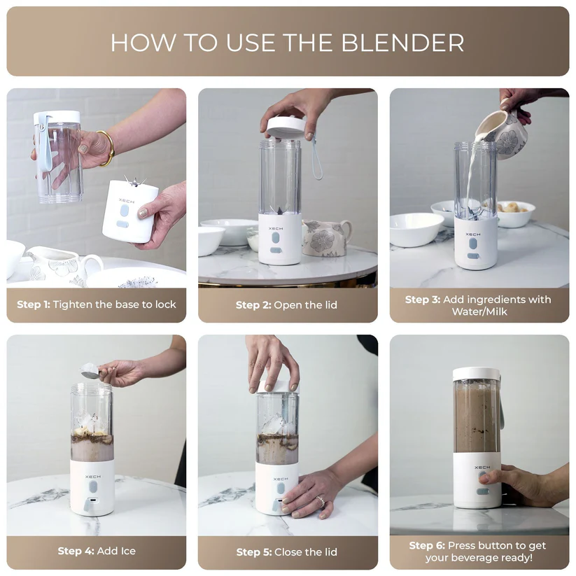 Features: Crush Ice | Rechargeable Battery | One Button Operation | 6 Stainless Steel Blades | Self Cleaning | Portable and Compact | Safety Cut-Off Mechanism | Quiet Operation | Easy to Carry Lanyard | BPA Free