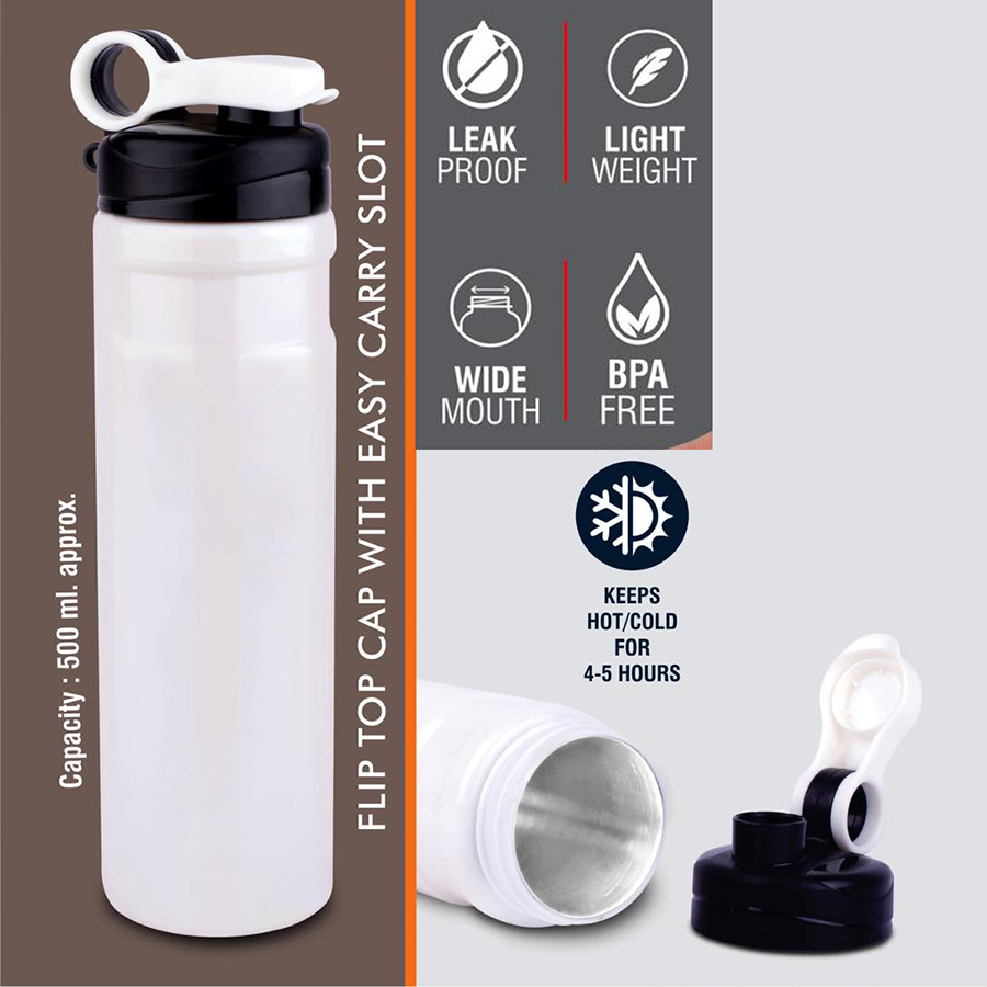 – Leakproof, Flip top cap to drink easily